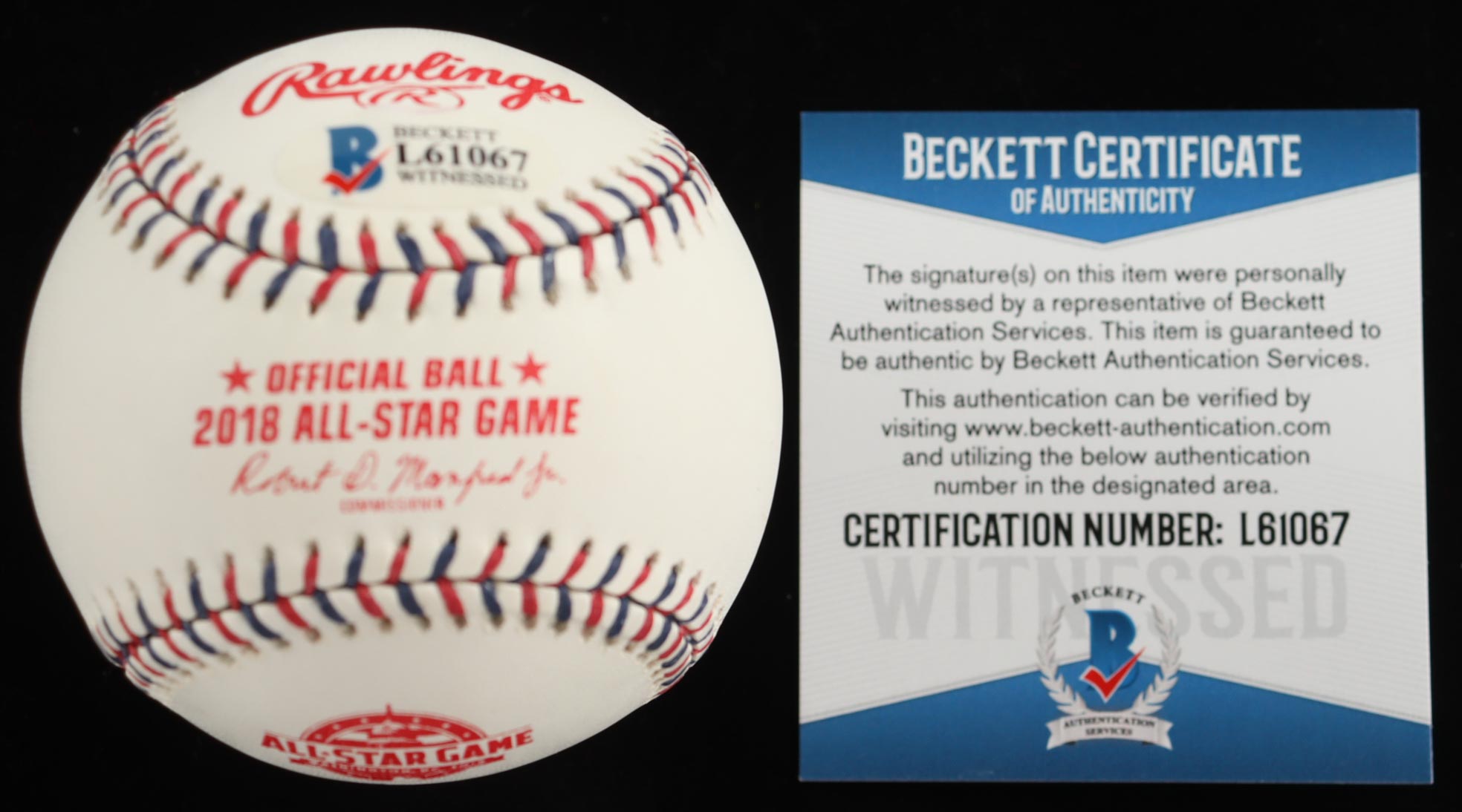 The autograph includes an official Beckett Authentication Services serially-numbered hologram and matching COA for authenticity purposes. The signing of this item was witnessed by Beckett.