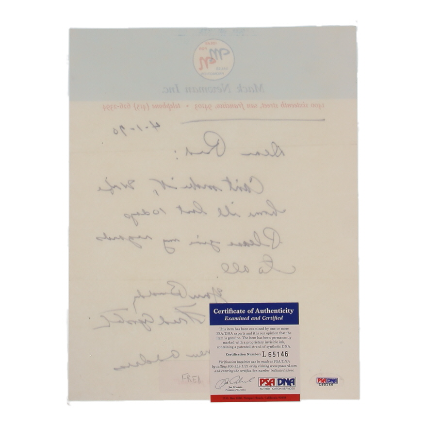 Fred Apostoli Signed Handwritten Letter (PSA)