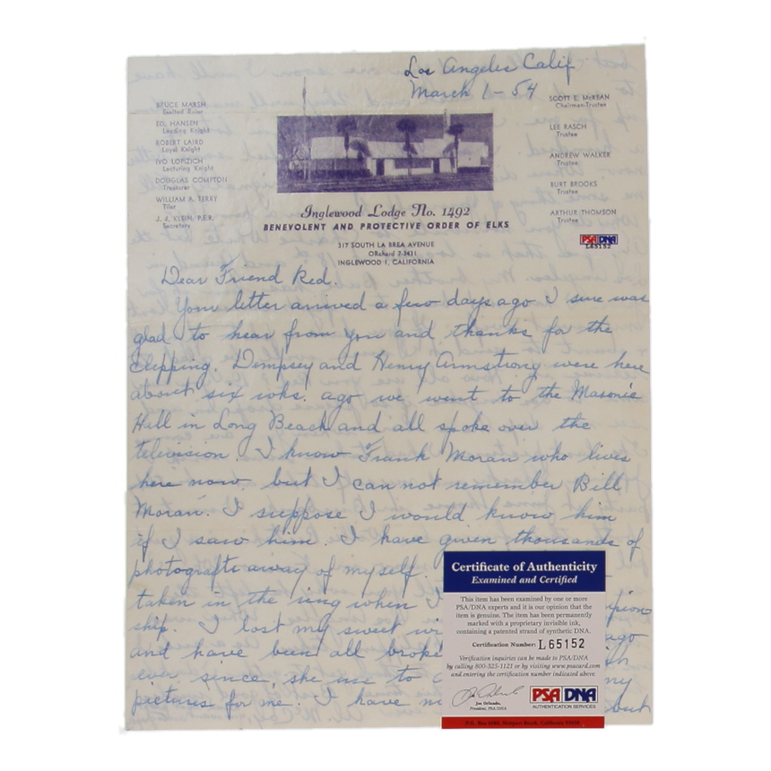 Letter measures approximately 8.5" x 11" in size and has been hand-signed and written by Al McCoy (D. 1966, HOF). Please note, the letter is laminated.