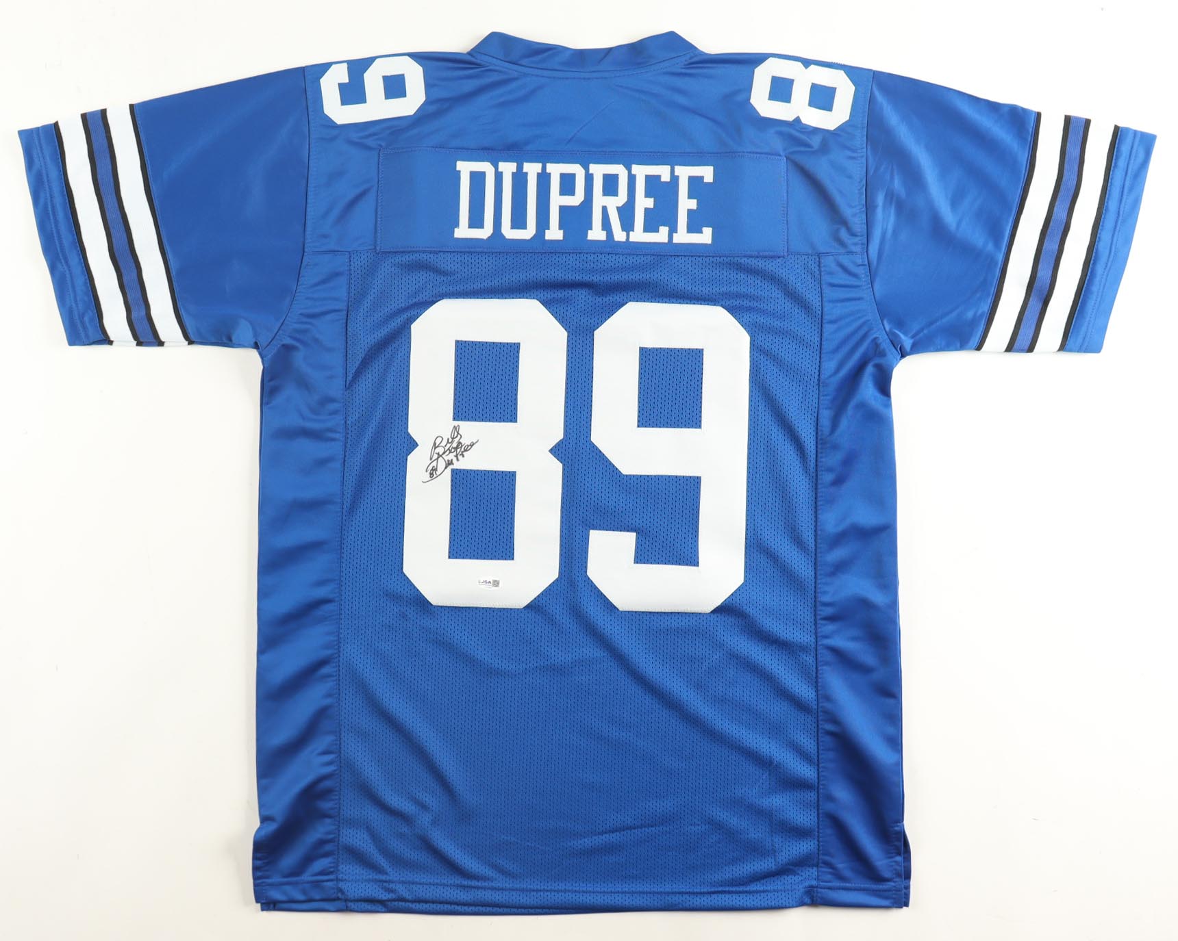 Custom jersey. Everything sewn on, size XL. Hand-signed by Billy Joe DuPree.