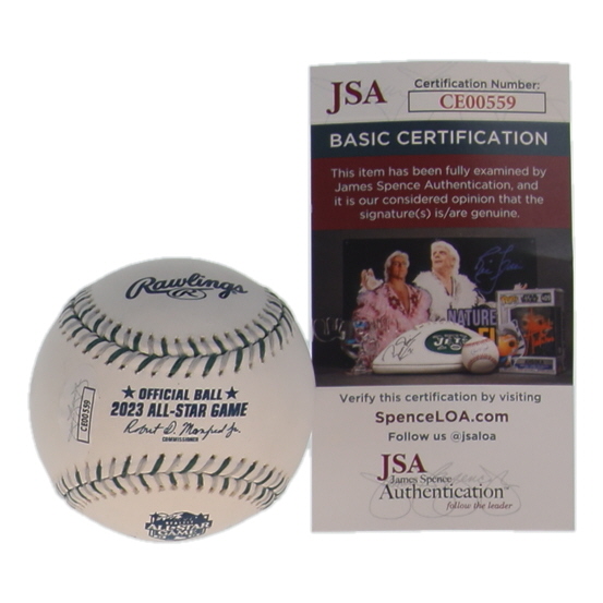 Rawlings Official 2023 All-Star Game Baseball. Hand-signed by Corbin Carroll (Arizona Diamondbacks). Please note, there are stains throughout the baseball.