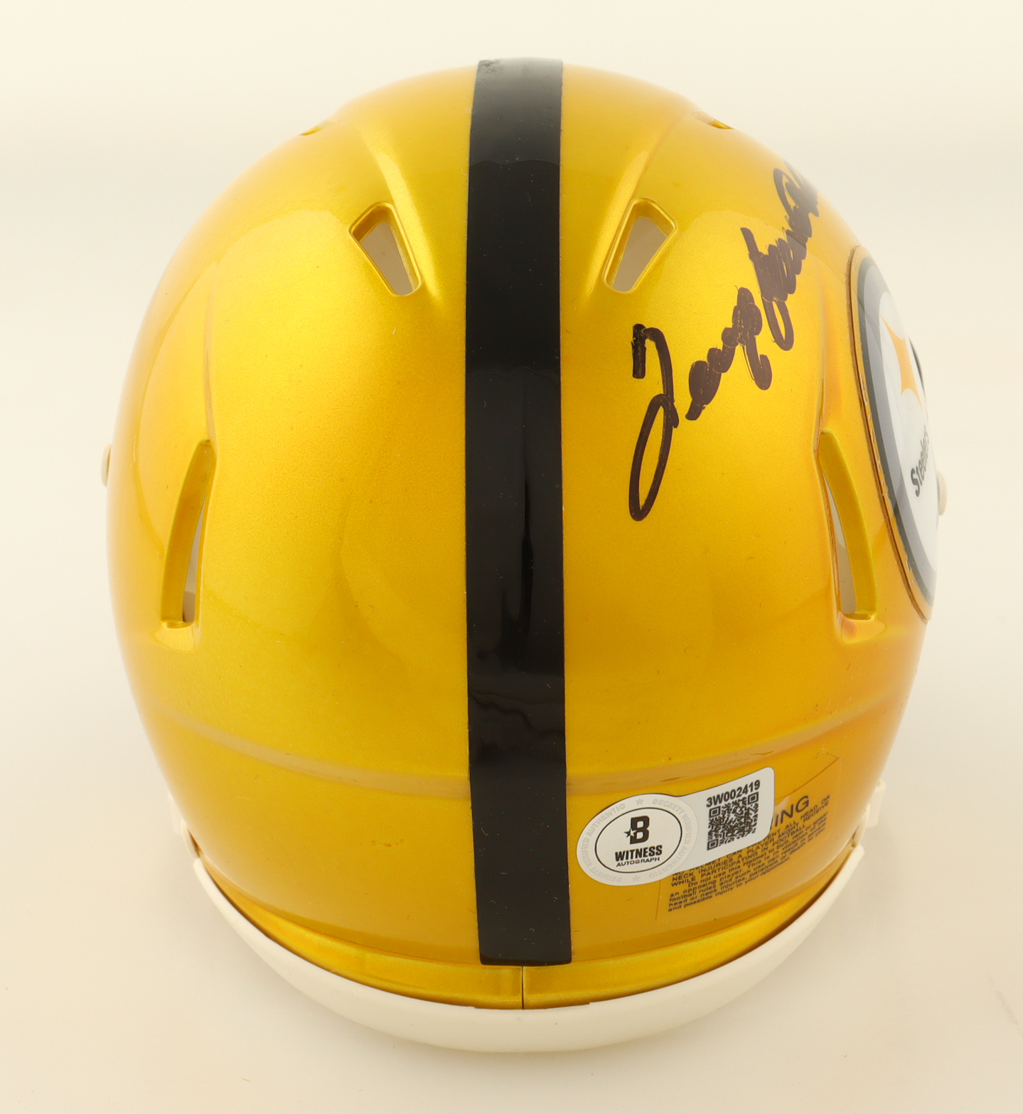 Riddell Pittsburgh Steelers Flash Alternate Speed mini helmet. Hand-signed by Terry Bradshaw (HOF).