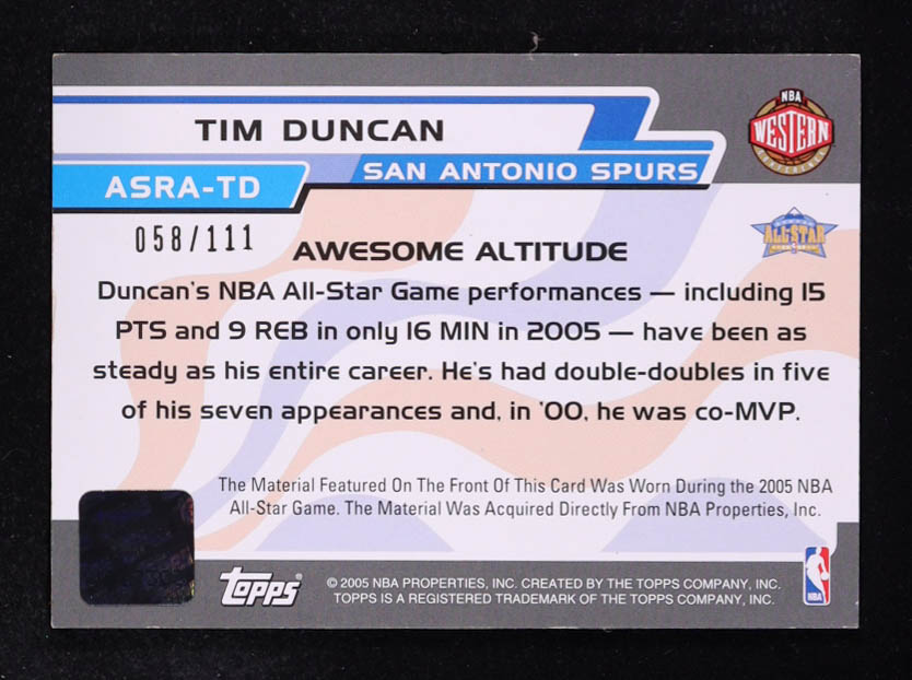 Tim Duncan 2005-06 Topps Big Game All-Star Rally Relics Autographs Shirt #TD #58/111
