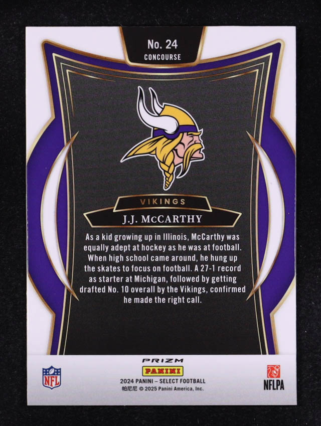 J.J. McCarthy 2024 Select Prizm Black & Red Shock #24 RC