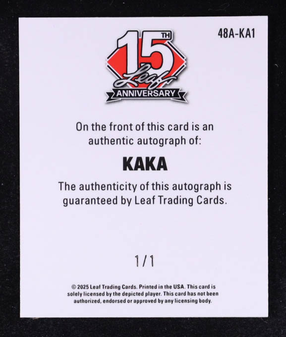 Kaka 2025 Leaf 15th Anniversary Leaf Autographs Silver Mini #48AKA1 #1/1
