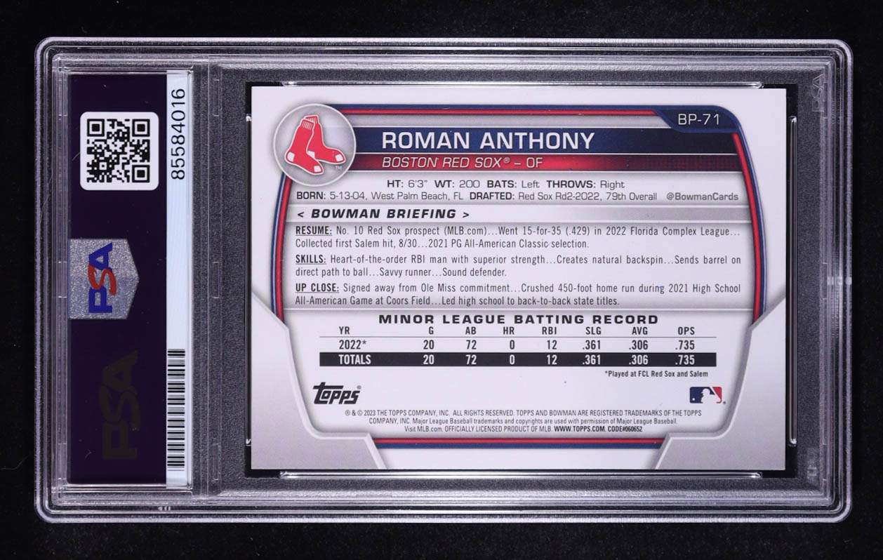 Roman Anthony Signed 2023 Topps 1st Bowman #BP-71 RC (PSA)