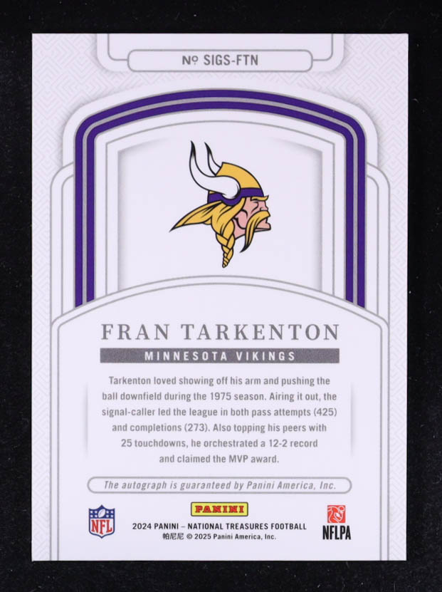 Fran Tarkenton 2024 Panini National Treasures Signatures Gold #18 #5/49