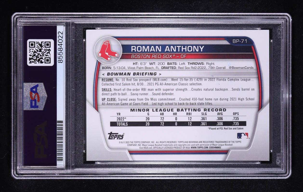 Roman Anthony Signed 2023 Topps 1st Bowman #BP-71 RC (PSA)