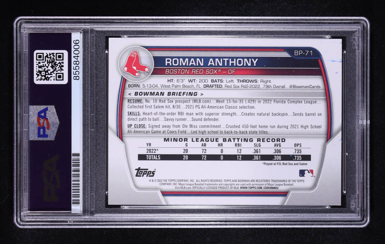 Roman Anthony Signed 2023 Topps 1st Bowman #BP-71 RC (PSA)