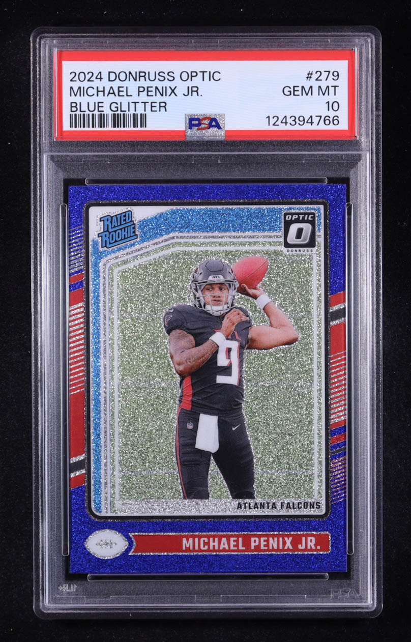 Michael Penix Jr. 2024 Donruss Optic Blue Glitter #279 RR RC (PSA 10)