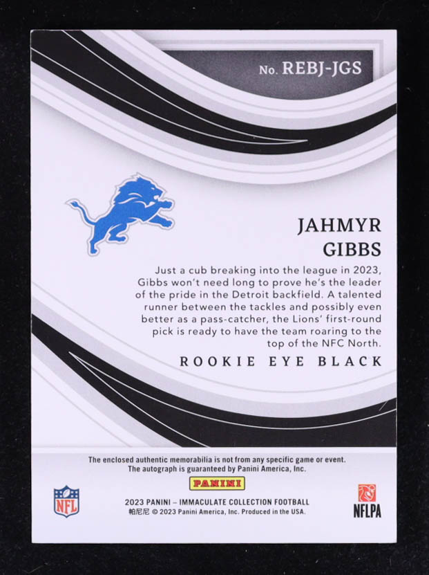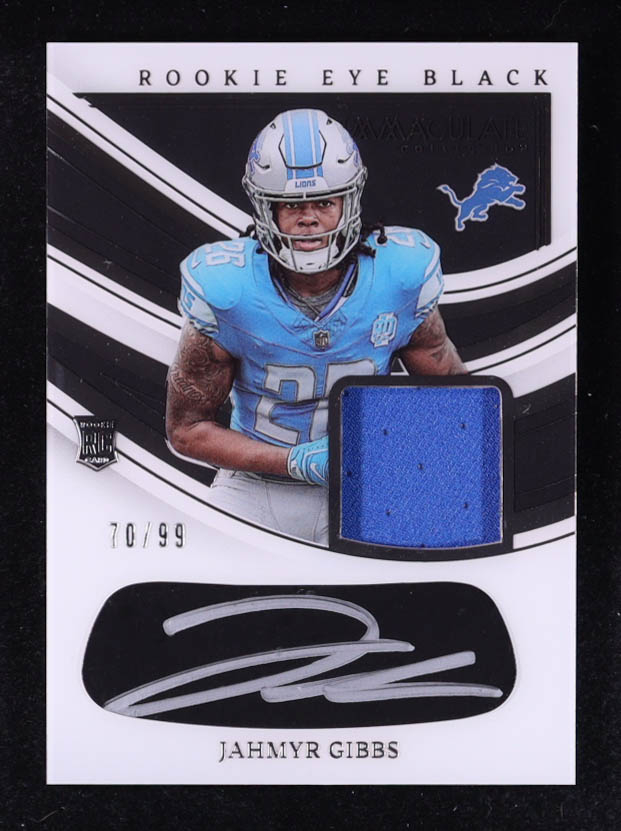 Jahmyr Gibbs 2023 Immaculate Collection Immaculate Rookie Eye Black Autograph Jerseys #6 #70/99
