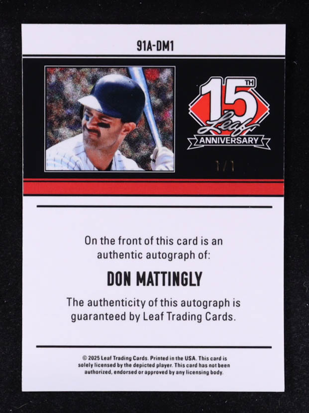 Don Mattingly 2025 Leaf 15th Anniversary Autographs Gold #91ADM1 #1/1