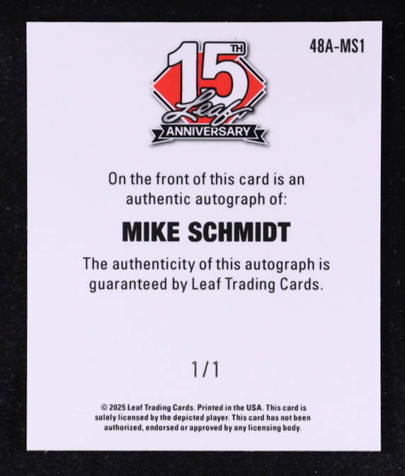 Mike Schmidt 2025 Leaf 15th Anniversary Leaf Autographs Silver Mini #48AMS1 #1/1