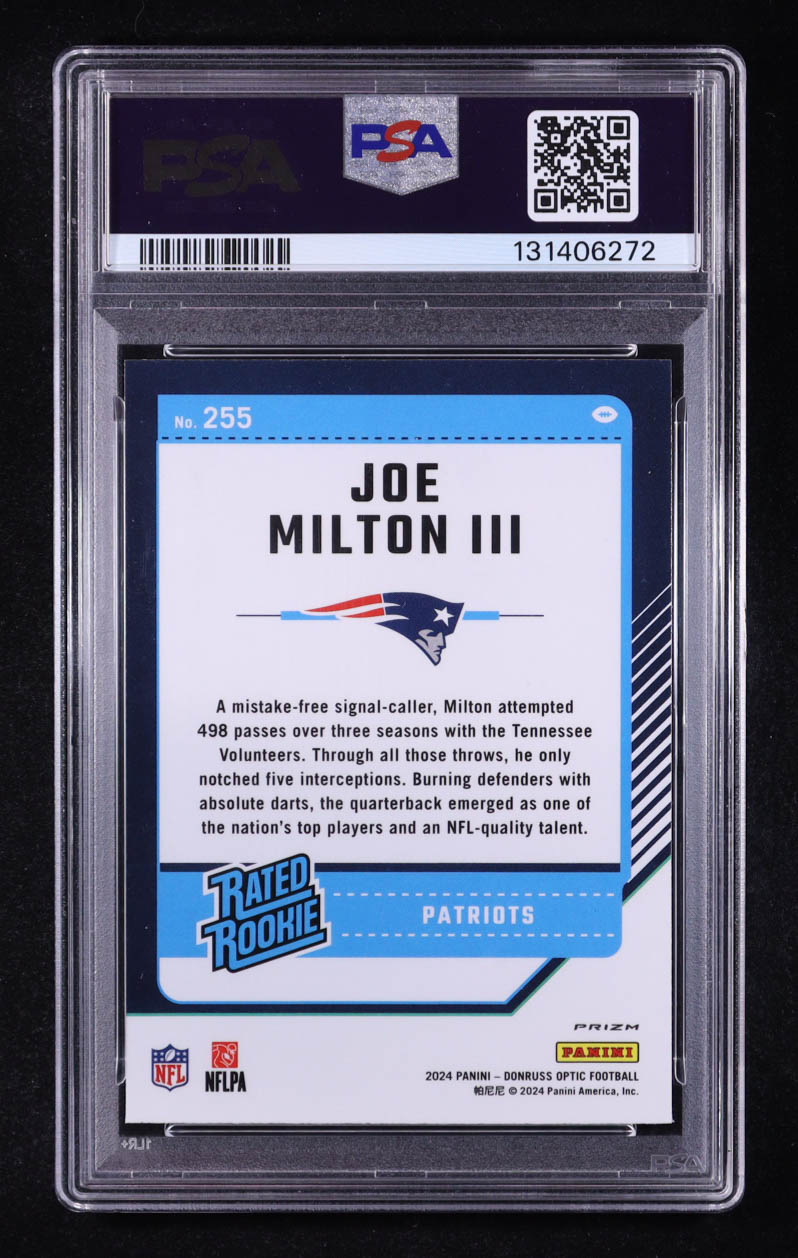 Joe Milton III 2024 Donruss Optic Blue Hyper #255 RR (PSA 9)