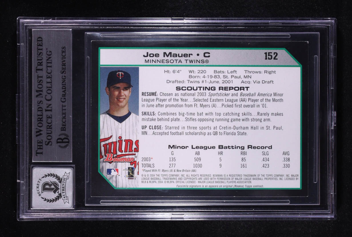 Joe Mauer Signed 2004 Bowman #152 (BGS | Auto Grade 10)
