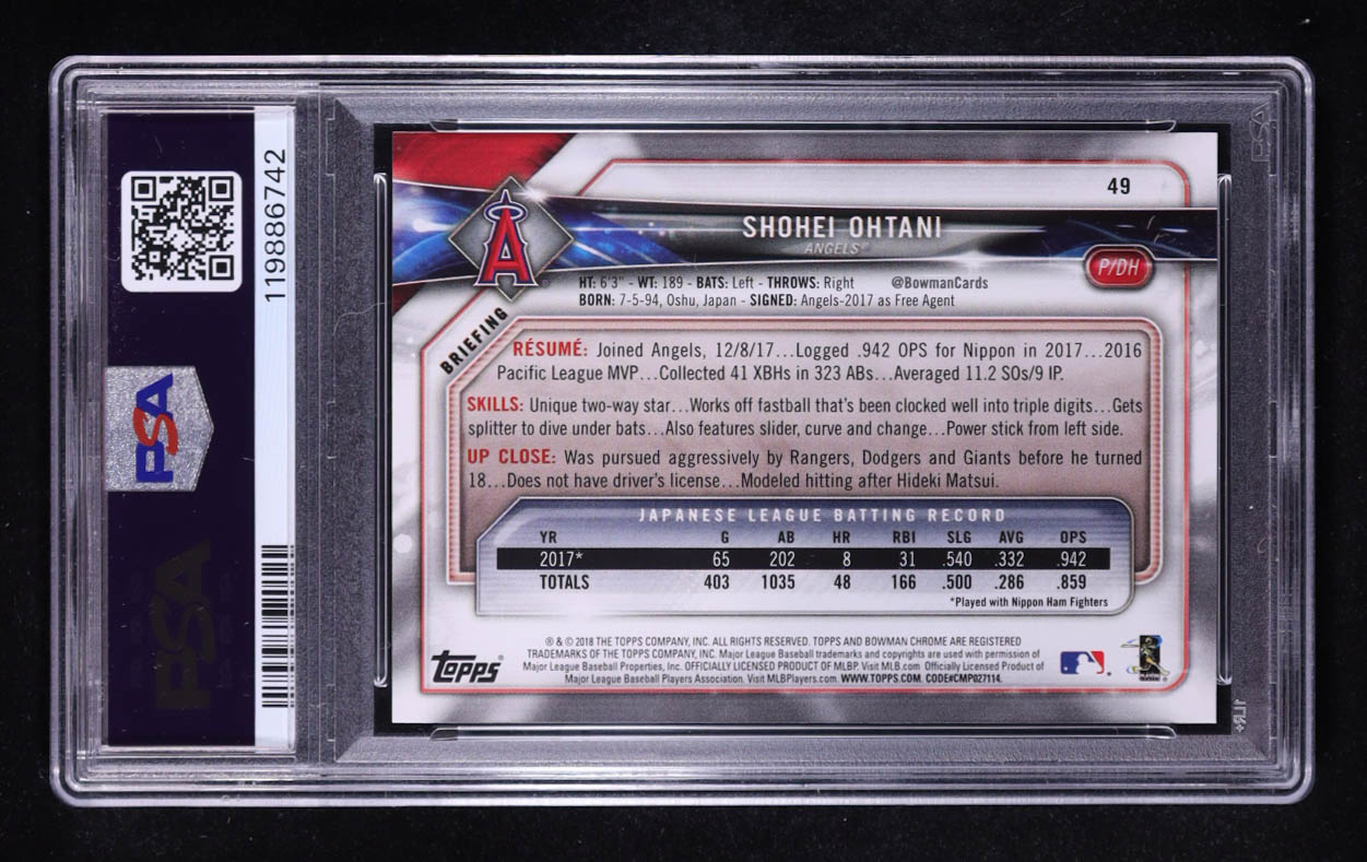Shohei Ohtani 2018 Bowman #49 RC (PSA 9)
