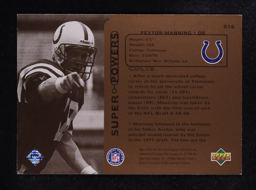 Peyton Manning 1998 Upper Deck Super Powers #S16 RC