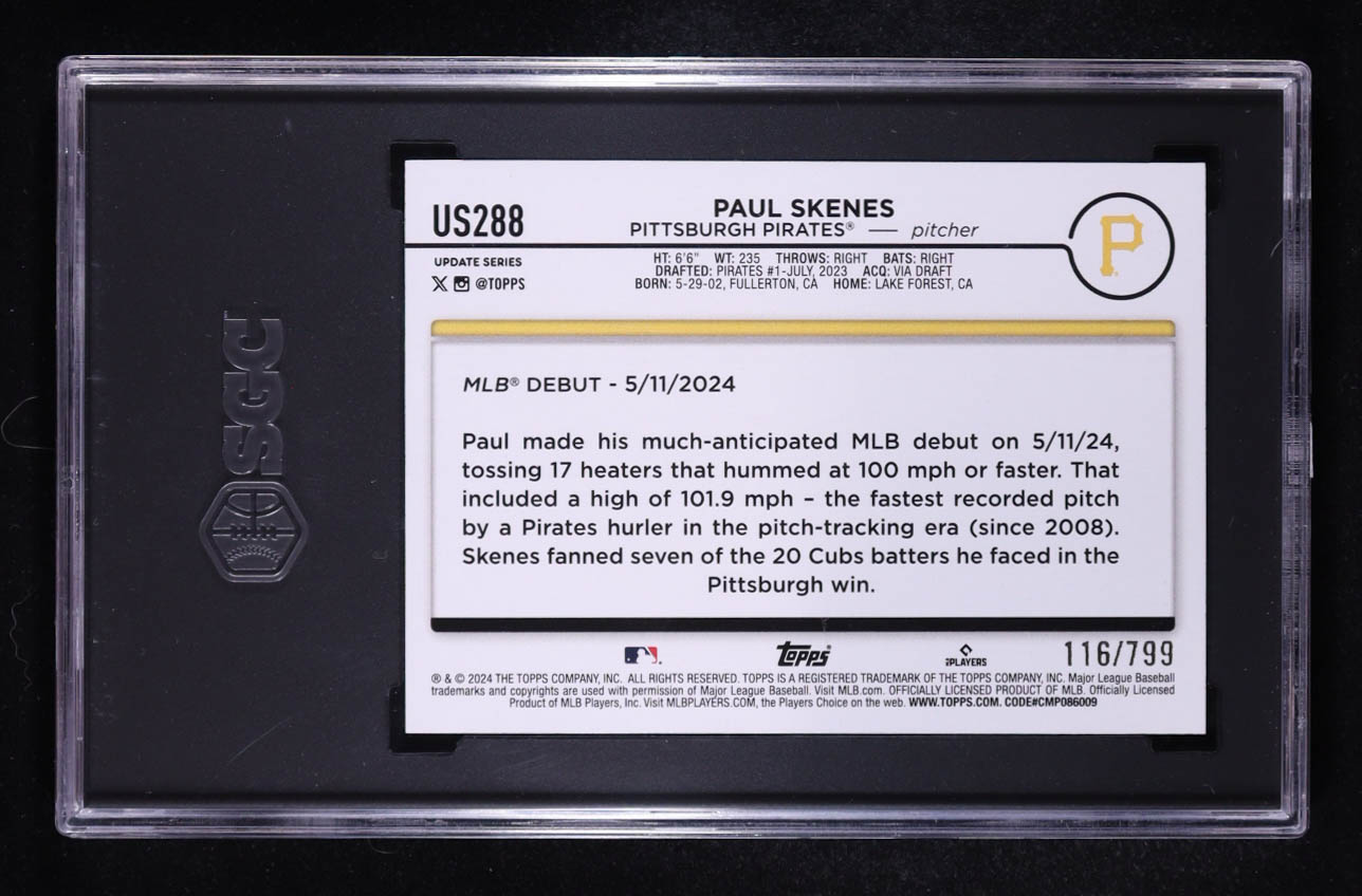Paul Skenes 2024 Topps Update Purple Foilboard #US288 RC #116/799 (SGC 10)