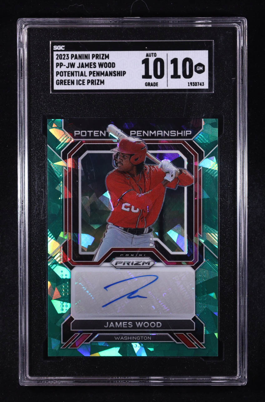 James Wood 2023 Panini Prizm Potential Penmanship Green Ice Prizm #PPJW RC (SGC 10 | Auto 10)