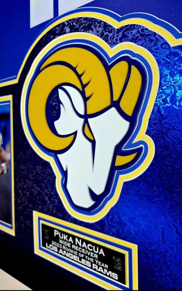 Custom frame measures 42" x 33" in size and features a Nike FUSE Limited jersey that has been hand signed by Puka Nacua (Los Angeles Rams).