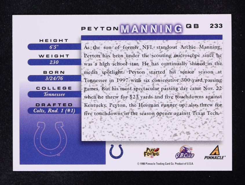 Please see photos for details regarding the condition of the card (Indianapolis Colts).