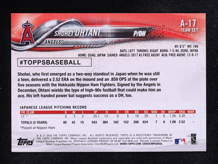 Shohei Ohtani 2018 Angels Topps #A17 RC