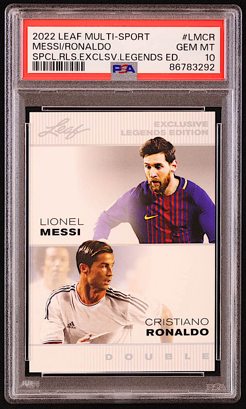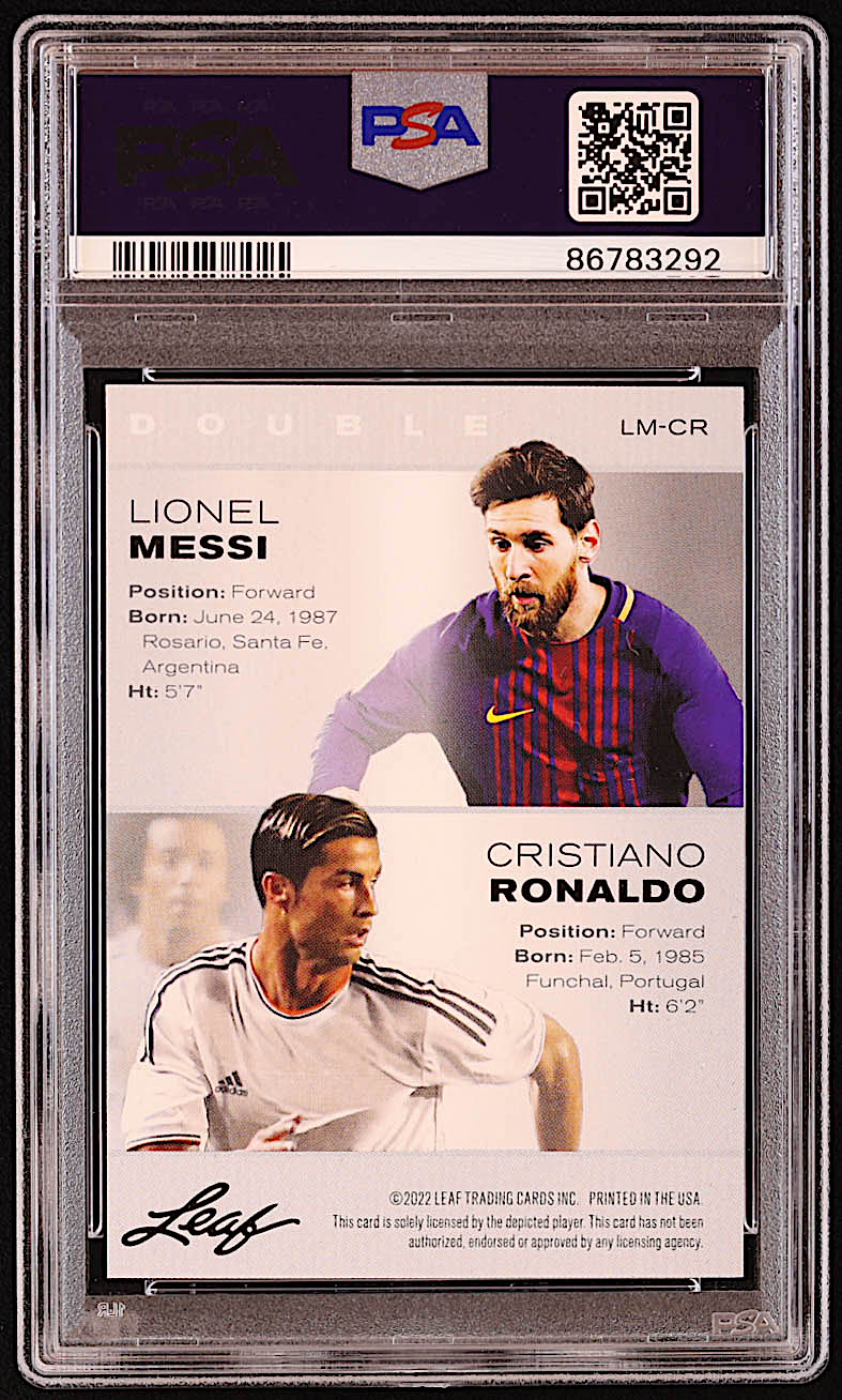 Lionel Messi / Cristiano Ronaldo 2022 Leaf Special Release Exclusive Legends Edition Double #LMCR (PSA 10)