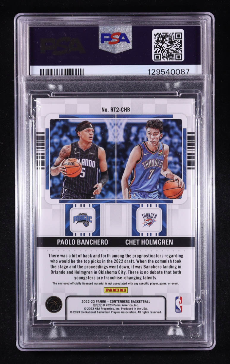 Chet Holmgren / Paolo Banchero 2022-23 Panini Contenders Rookie Ticket Dual Swatches #5 RC (PSA 8)