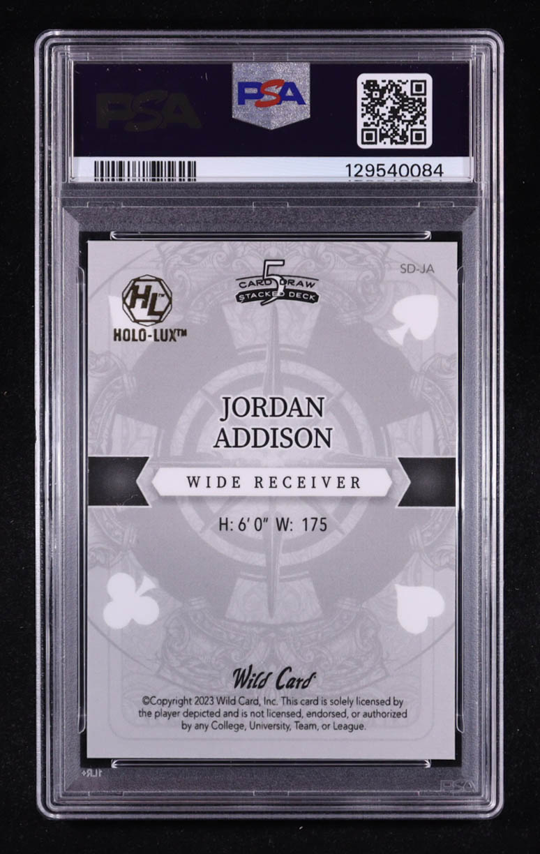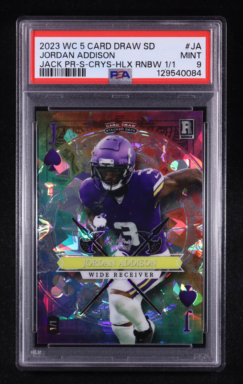 Jordan Addison 2023 Wild Card 5 Card Draw Stacked Deck Jack of Clubs Prismatic Crystal Holo-Lux Rainbow #JA RC #1/1 (PSA 9)