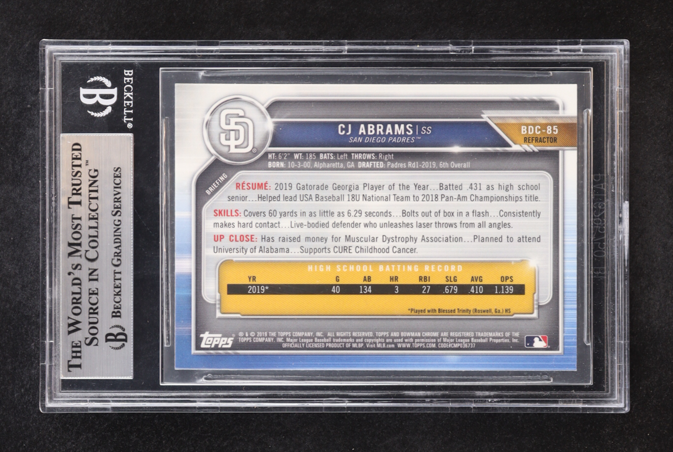 CJ Abrams Signed 2019 Bowman Chrome Draft Refractors #BDC85 (BGS)
