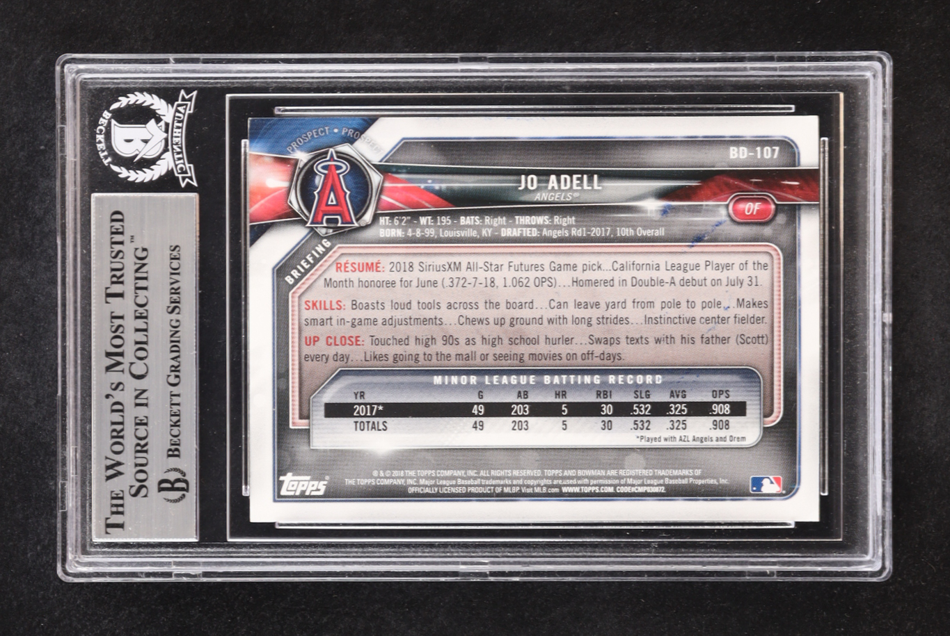 Jo Adell Singed 2018 Bowman Draft #BD107 RC Topps Vault Blank Back (BGS)