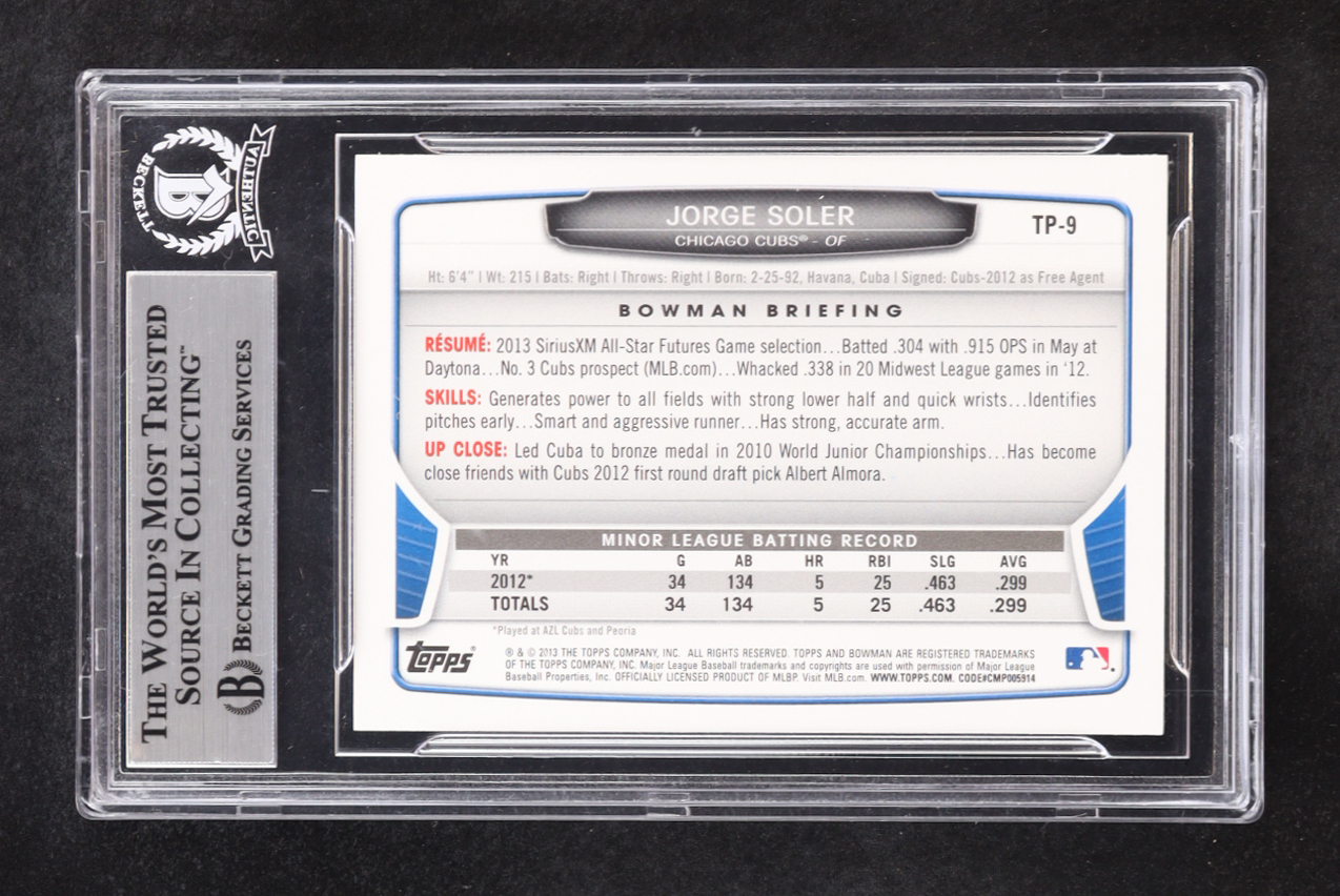 Jorge Soler Signed Sticker on 2013 Bowman Draft Picks & Prospects Top Prospects #TP9 (PSA)