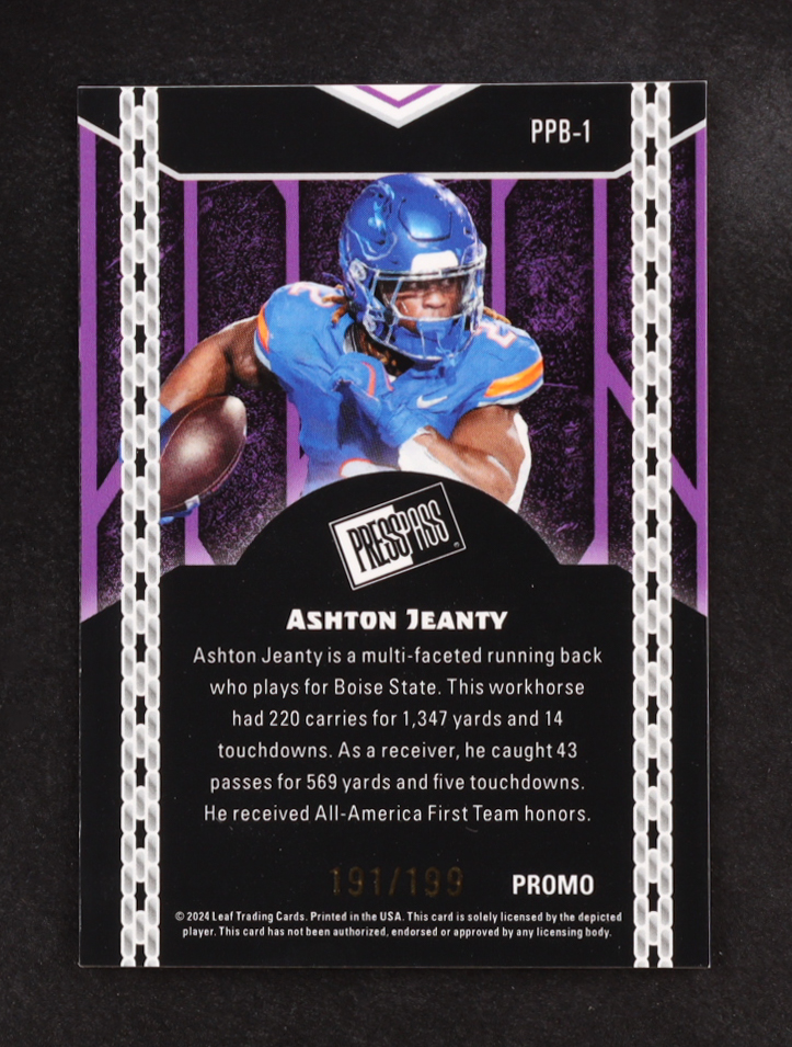 Ashton Jeanty 2024 Leaf Collective Promo Press Pass Shimmer Purple #PPB1 #191/199 RC