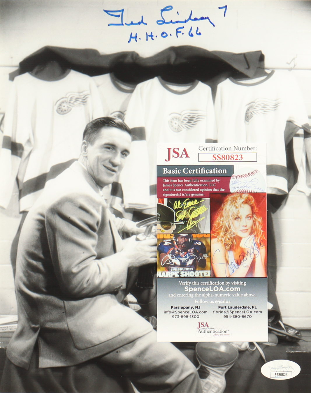 Ted Lindsay Signed Red Wings 8x10 Photo Inscribed "H.H.O.F. 66" (JSA)