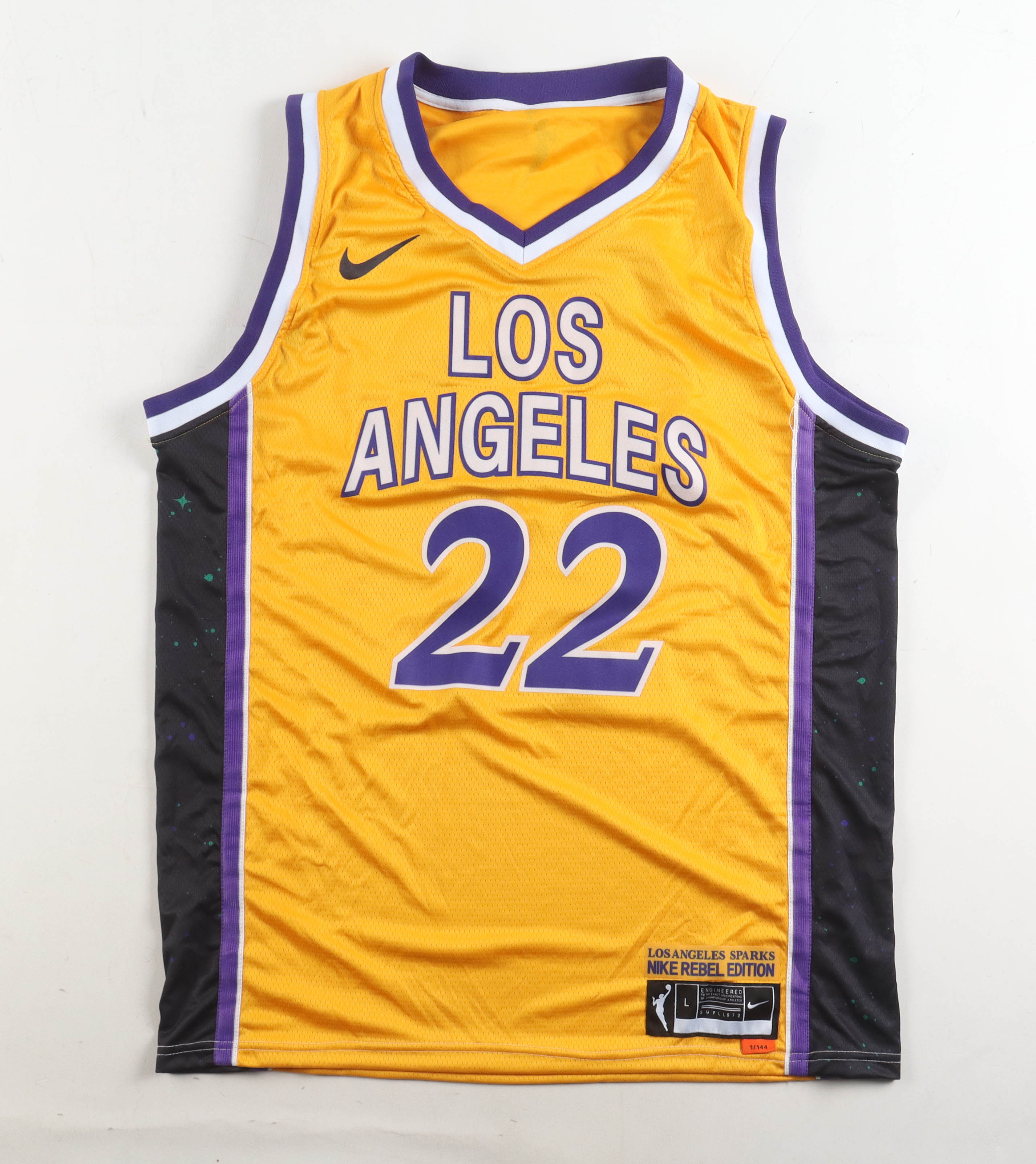 Nike jersey with everything pressed on, size L. Hand-signed by Cameron Brink (Los Angeles Sparks).