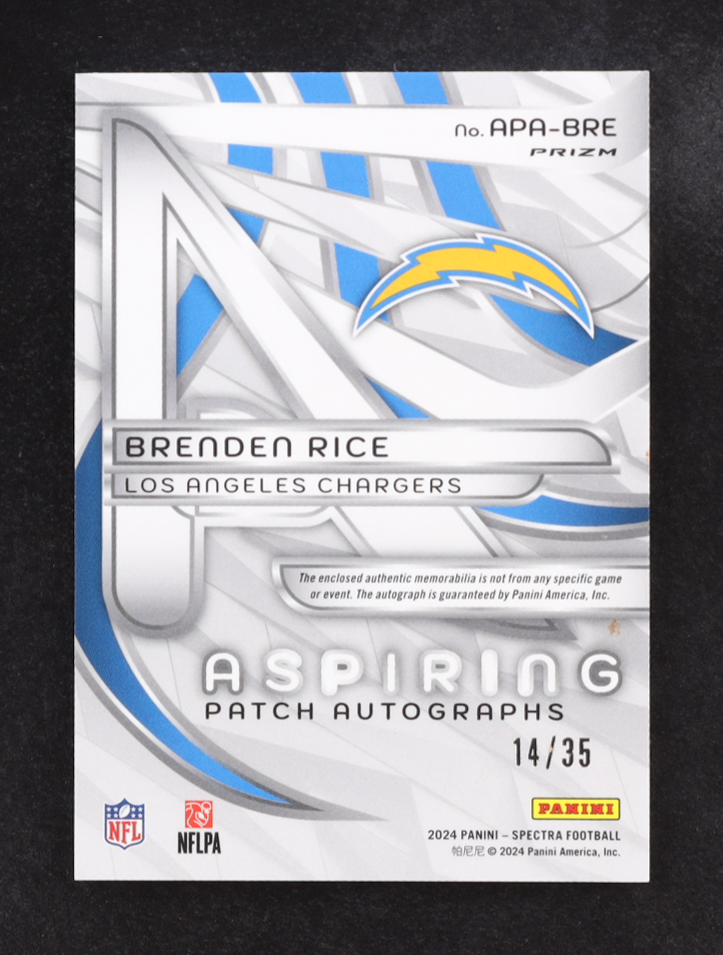 Brenden Rice 2024 Panini Spectra Aspiring Patch Autographs Neon Green #19 #14/35 RC