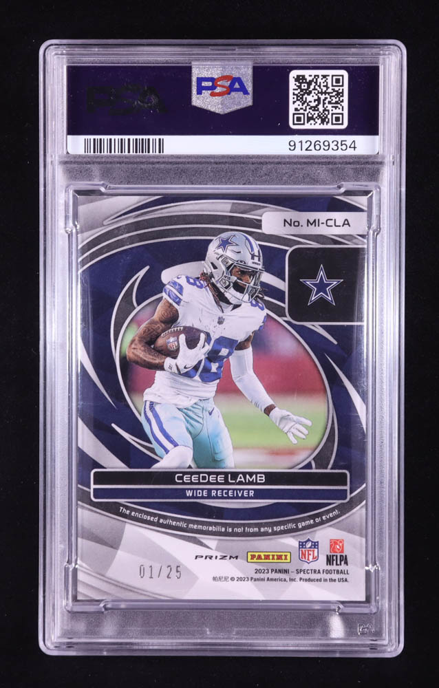 CeeDee Lamb 2023 Panini Spectra Max Impact Materials Meta #14 #1/25 (PSA 10)