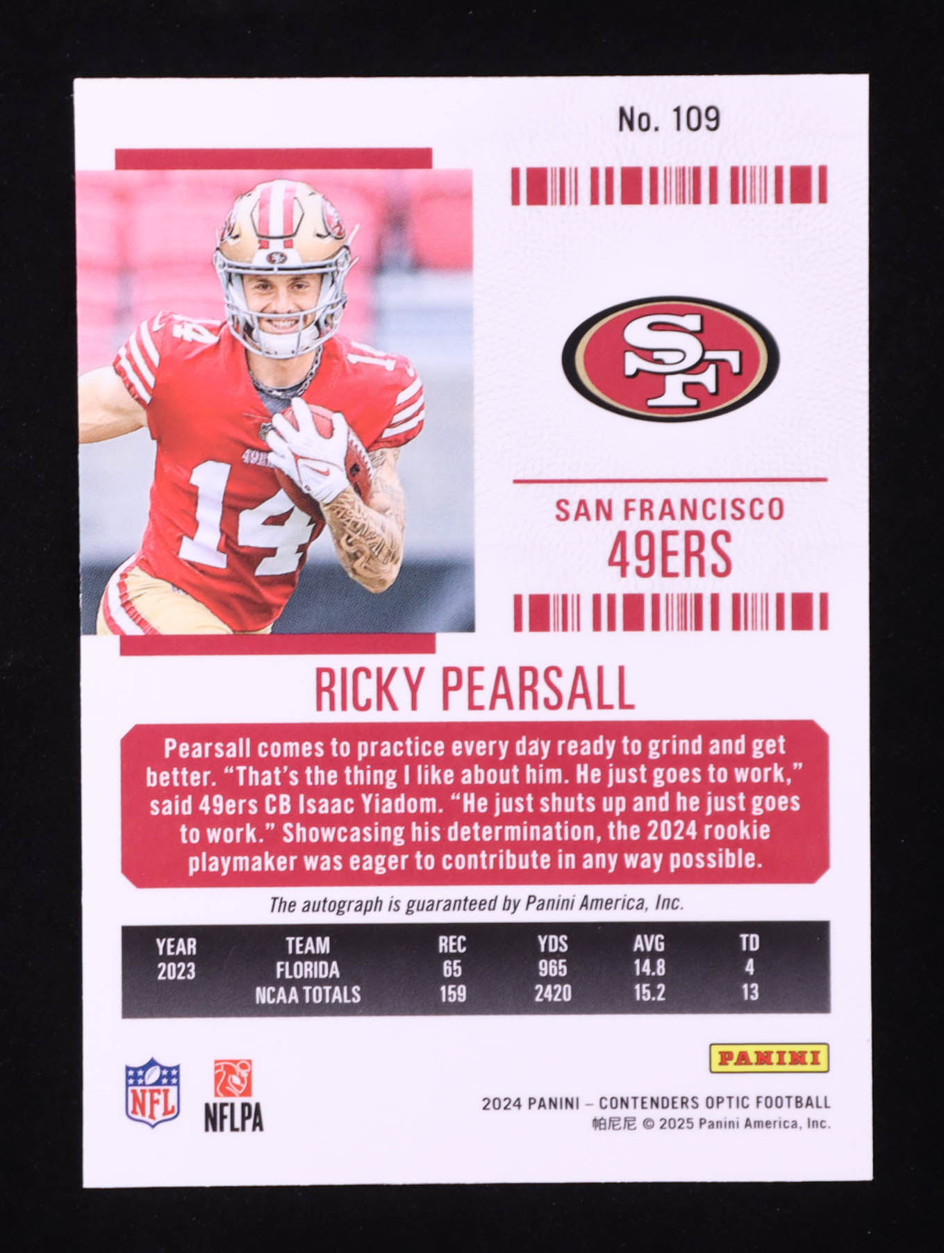 Ricky Pearsall 2024 Panini Contenders Optic Rookie Ticket Auto #109 RC