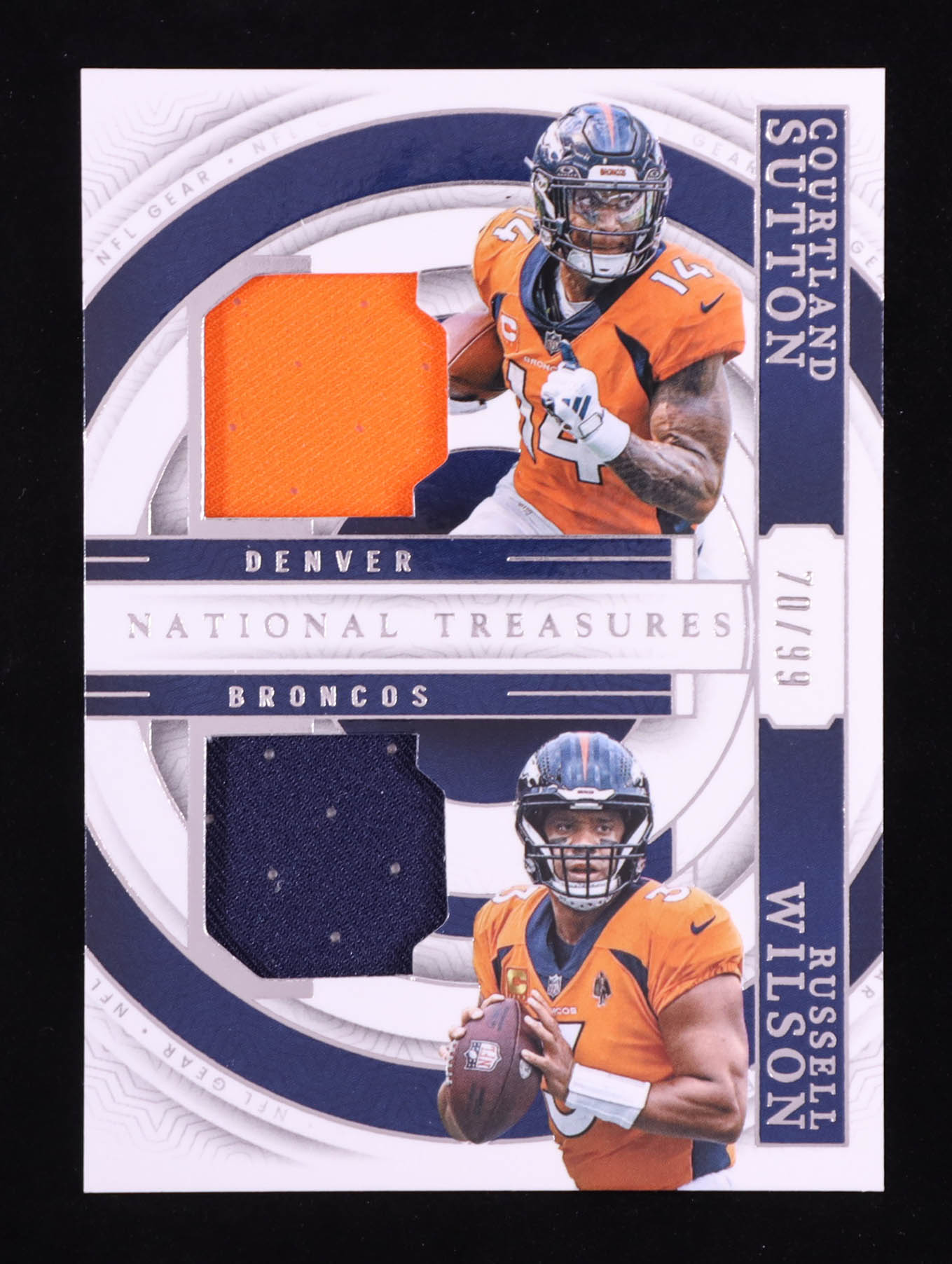 Cortland Sutton / Russell Wilson 2023 Panini National Treasures Dual Patch #GCM-DEN #70/99