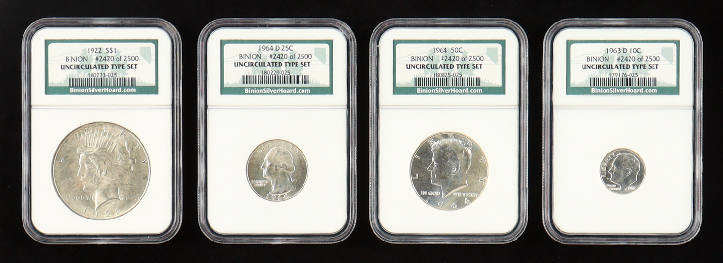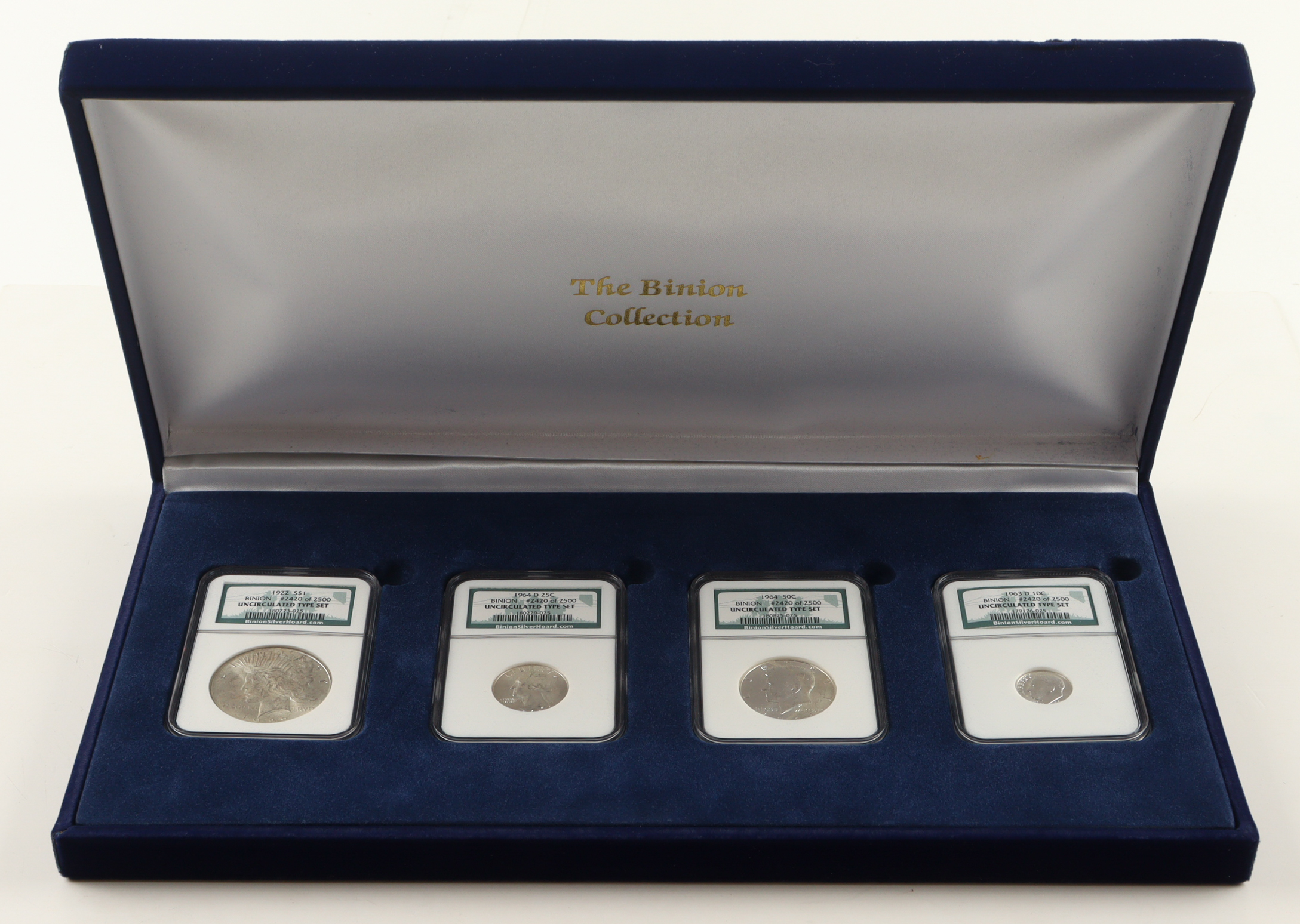 The Binion Collection (4) Coin Uncirculated Binion Silver Coin Type Set With Display Case #2420/2500