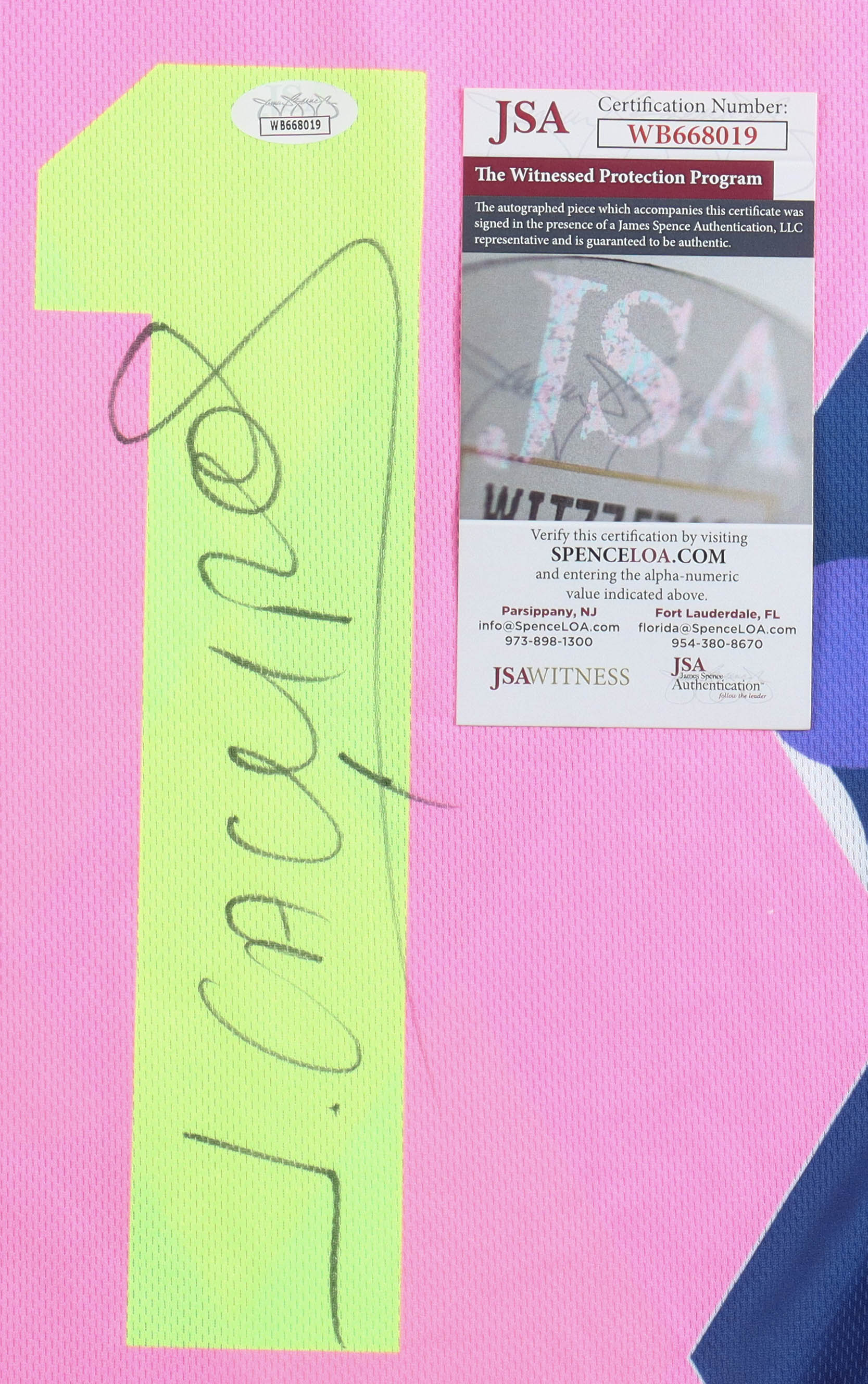 Custom jersey with everything printed on, size L. Hand-signed by Jorge Campos.