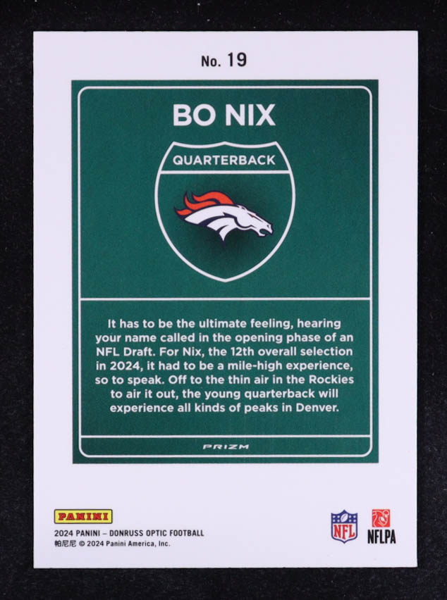 Bo Nix 2024 Panini Donruss Optic #19 RC