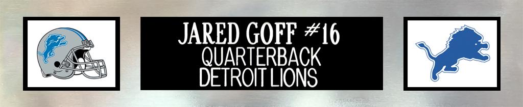 Custom frame measures 35" x 43" in size and features a Nike authentic jersey that has been hand-signed by Jared Goff (Detroit Lions).