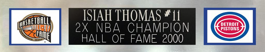 Custom frame measures 35" x 43" in size and features a jersey that has been hand-signed by Isiah Thomas (Detroit Pistons, HOF).
