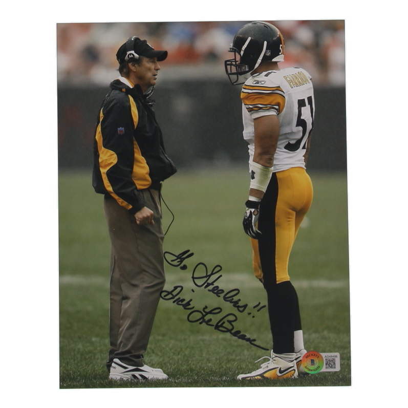Photo measures 8" x 10" in size and has been hand-signed and inscribed by Dick LeBeau (Pittsburgh Steelers, HOF).