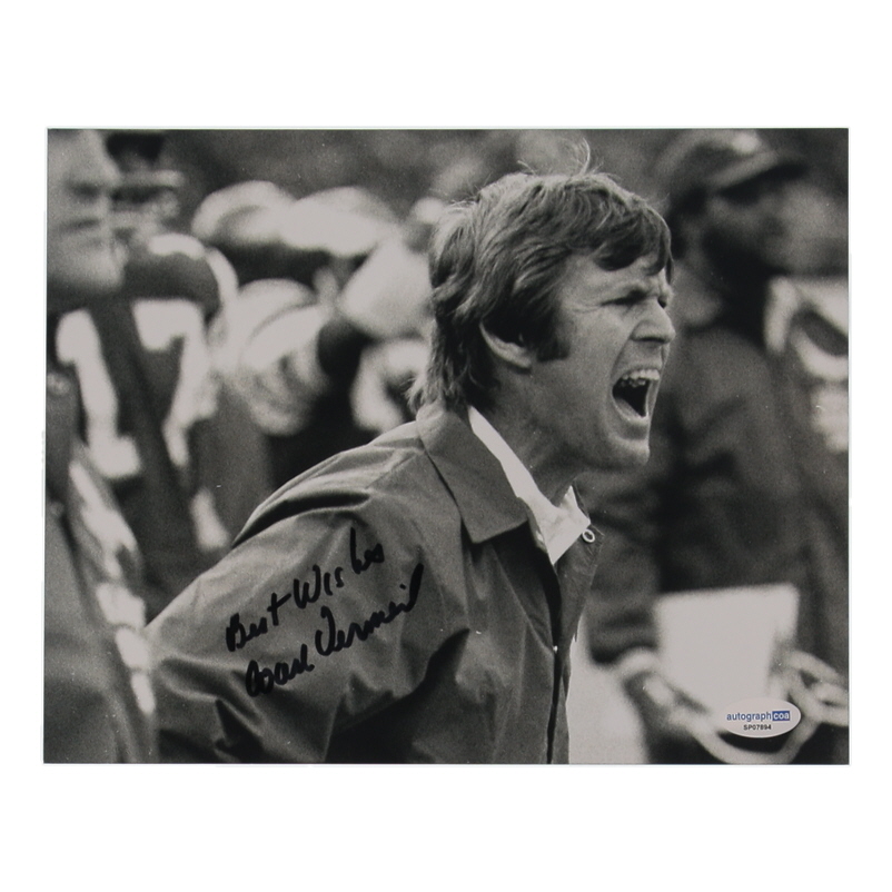 Photo measures 8" x 10" in size. Hand-signed and inscribed by Dick Vermeil (Philadelphia Eagles, HOF).