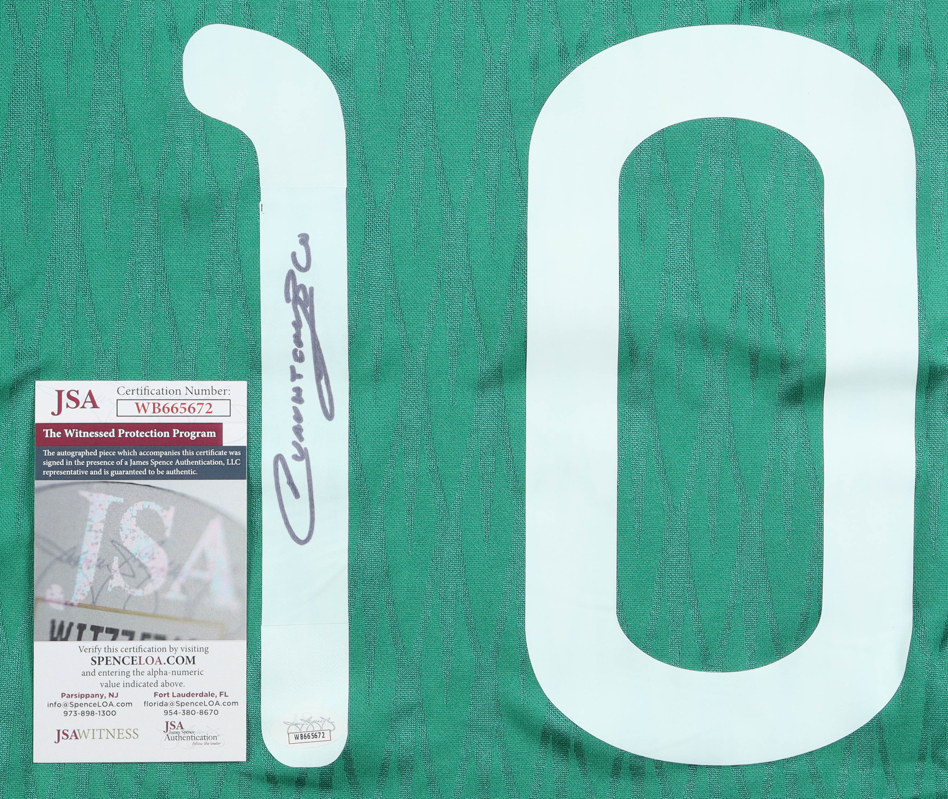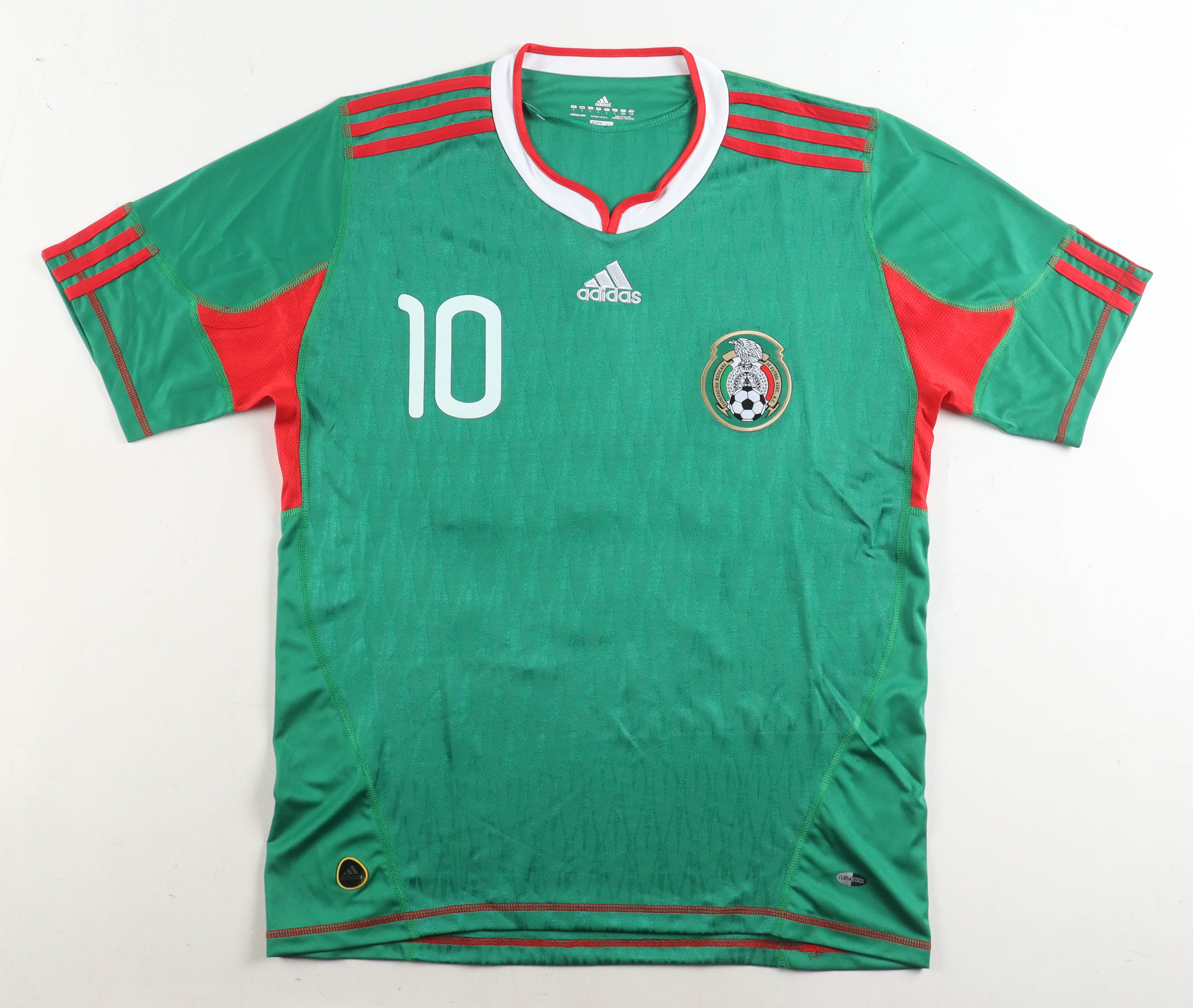 Adidas jersey with everything sewn/printed on, size L. Hand-signed by Cuauhtemoc Blanco (Mexican National Team).