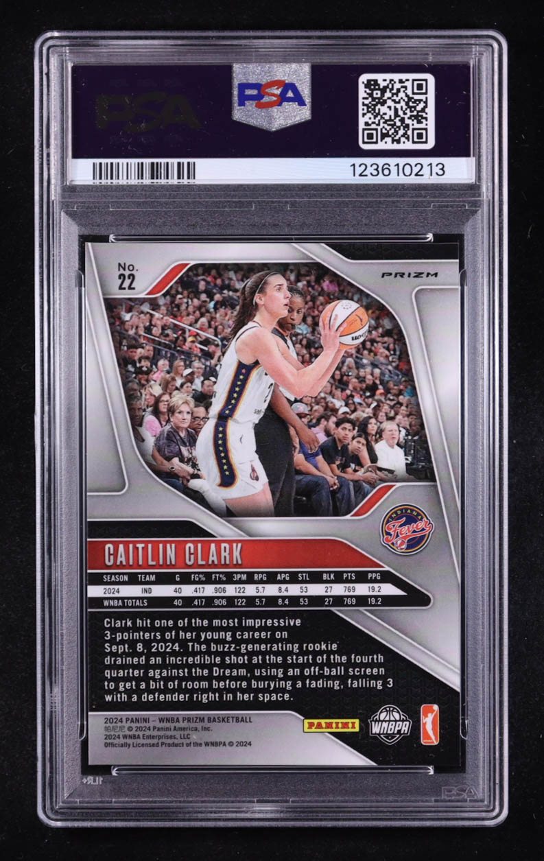 Caitlin Clark 2024 Panini Prizm WNBA Prizms Blue Velocity #22 RC (PSA 9)