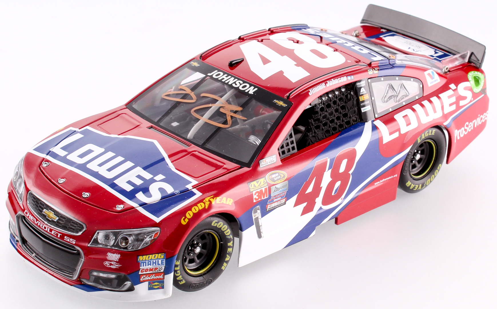 Jimmie Johnson Signed LE #48 Lowe's Red Vest 2016 Chevrolet SS NASCAR Elite 1:24 Scale Die-Cast Car (JSA COA)