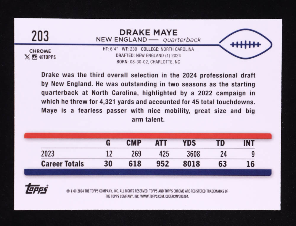 Drake Maye 2024 Topps Chrome Blue Sonar Refractors #203 RC #46/150